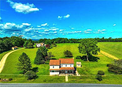 15-Acre PA. Farmhouse Retreat with Historic Charm & Modern Luxury! Discover a rare blend of rustic heritage and refined comfort in this 3,500 sq ft farmhouse, perfectly set on 15 scenic acres with a meandering stream & former fish hatchery raceways. Minutes from I-476, this remarkable property offers easy access to the Lehigh Valley & the Scranton-Wilkes Barre area, while providing the privacy & beauty of a country estate Inside, 3 luxury BR Suites, each with its own FPL & private bath - plus a fourth en-suite BR offer exceptional comfort for family or guests. This spacious main level features a formal dining room, open concept kitchen with island seating, & a functional 4 season room overlooking the stream. A dramatic 16-ft-high architectural opening, viewed from the catwalk above, creates a striking focal point. Convenience is built in with a 1st floor ldy & 1/2 bath. Outdoors, a summer kitchen building adds character & versatility, while a 1,300 sq ft garage with 2nd story space provides abundant storage or workshop potential. Add'l buildings include a heated 12' x 16' kennel with fenced run, two utility structures, & barn & stable -perfect for hobbies, animals, or creative projects.The property's flexible layout & multiple private suites are perfect for a Bed & Breakfast or retreat setting. whether you envision a private residence, equestrian retreat, income producing Bed & Breakfast, this property delivers unmatched charm and lifestyle opportunities. #764068