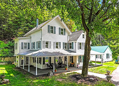 A Rare Storybook Escape with Endless Potential on nearly 3 acres of serene woodland. As a full-time residence, vacation home, or lucrative rental retreat the property feels like something out of a fairytale. A long stone wall, stone walkways and weathered benches dot the grounds, almost Alice in Wonderland feel. Inside, you're greeted by the impressive stone backside of a grand FP, sunroom-like living area flooded with natural light, complete with its own FP, perfect for cozy gatherings. The eat-in kitchen, featuring updated Appl’s, opens through French doors onto a porch. Flexible living spaces: a 1-BR Apt with a private porch and separate entrance. A studio Apt with its own entrance--ideal for guests, extended family, or rental income. The ''Boat House,'' a bonus room w bath. Imagine transforming this space into a stunning spa-like retreat with a hot tub or sauna. #PW-252183 $389,000!!!
