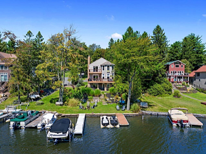 Prime location with year round lake views! This distinctive Dutch barn style home is just a short walk to the beach, pool, courts and rec hall. Fully Furnished 1st floor Master Suite. Upstairs are 4 BRs. LR w FP, Updated Kit, Hardwood Floors. Back yard Fire Pit. #761030