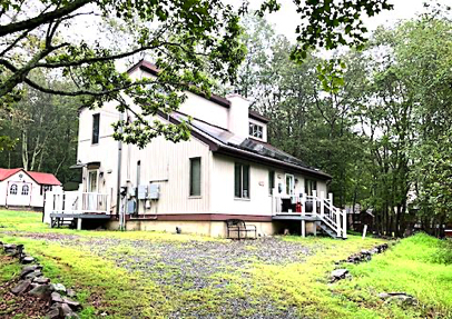 Don't miss out on this gorgeous 3-bedroom 3 full bath RAISED CHALET located on a 1.08-acre lot in Bear Creek Lakes just north of HISTORIC JIM THORPE! The main level features an open concept dining area, a kitchen with a center island and a living room. Cathedral ceilings and large windows/sliding doors that overlook the wrap around trex deck. The primary suite has a walk-in closet, and the master bathroom has a whirlpool/jet tub and dual vanities. This level also has another guest bedroom, full bathroom and laundry room. The 3rd level features a large bedroom, full bathroom and a cozy loft area for an office space or to just relax and enjoy a book. This home also has central air and a central vacuum system. As a bonus the 1st level features a family room, a nice sized storage room and an oversized build-in 2 car garage. This home is turnkey, all furniture/furnishing stay. The property is just mins. from the downtown Jim Thorpe area, where you can find shops, restaurants and museums. Enjoy hiking, biking, and kayaking in the nearby Lehigh Gorge State Park, Mauch Chunk Lake, and Jim Thorpe Rail Trail. Easy access to route 903, 209, 80, 476, and 248. #763102